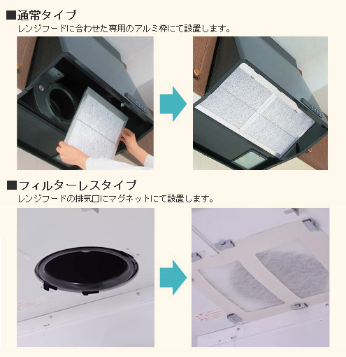 ※レンジフードの機種により、数枚のアルミ枠・フィルターが必要な場合があります。