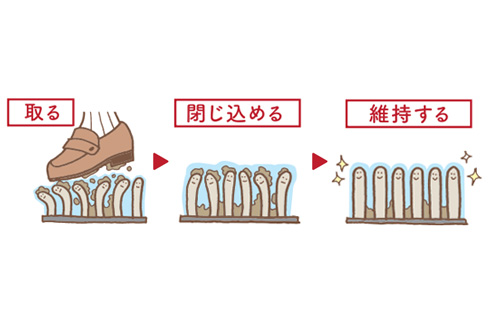 家の中に泥やホコリを持ち込まずいつも玄関はキレイで清潔。抗菌加工で※1菌を含んだ※2汚れを持ちこませません※3